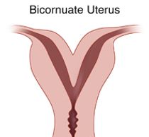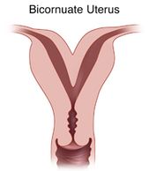 Bicornuate uterus appears similar to septated uterus, but the outer fundus no longer has the normal rounded shape. Instead, the outer shape shows a mid indentation at least 1cm and a wide intercornual (tube) distance that can be appreciated via hysteroscopy, as well as laparoscopy. A bicornuate uterus cannot be treated with simple resection and therefore surgery is not indicated. However, there is an increased risk of recurrent pregnancy loss, cervical incompetence, and preterm delivery. Many patients are told they have a bicornuate uterus when, in fact, they may have an arcuate uterus or septated uterus.