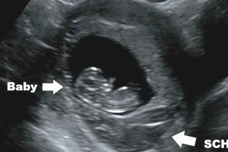 Bleeding is common. It almost always arises from the placenta or placental margin (occasionally from the cervix- Cervix infection and irritation can cause bleeding at any time in pregnancy). Placental bleeding may or may not form a subchorionic hemorrhage (SCH). Subchorionic hemorrhage may be very small and hard to visualize, or very large- even larger than the pregnancy. Older blood appears dark by ultrasound, more recent bleeding appears echogenic (brighter). What causes placental bleeding and subchorionic hemorrhage? Remember the placenta (which arises from baby) is attached to the uterus (you). Think of it as a special kind of glue. We want the glue to work well throughout pregnancy, but we want it to become unglued so the placenta can also deliver soon after birth of the baby. In the mean time, the uterus is growing, the placenta is growing, and the uterus has lots of contractions to help it grow. So...we are asking a lot from that special glue, and it's not surprising it can become unglued around the edges. The placenta is very vascular so any little bit of 'ungluing' is likely to result in bleeding.