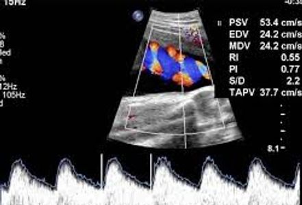 Doppler studies of the umbilical artery, middle cerebral artery, and the uterine arteries can help confirm that baby is getting sufficient blood delivered to the placenta. Increased resistance of the umbilical artery Doppler can indicate growth restriction, preeclampsia, or elevated blood pressure.